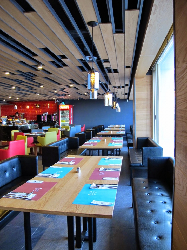 裝潢手法毫不馬虎,除了天花板造型、顏色搶眼外,連燈光、家具都相當考究,果然經過紐約設計團隊打造出來,整體設計的周全度、完整度就是很不一樣。
