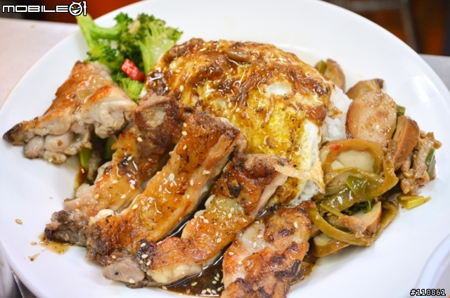 愛吃飯的他們也有飯,這個是結合鐵板雞排的雞排飯,是隔壁桌點的~我看到就很想吃看看,整個很誘人..超大盤!
