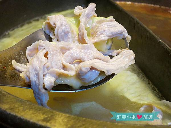 這盤松阪黑豬肉一上桌的時候,店員還特地解釋說因為沒有添加肉精,所以黑豬肉一下鍋會散開來變成一條一條,肉質極為有嚼勁兒。