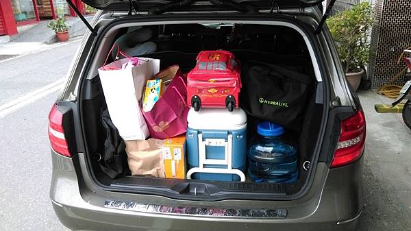吃的用的喝的這樣就把後車廂塞滿了!買了一台休旅車這次最實用(^▽^)