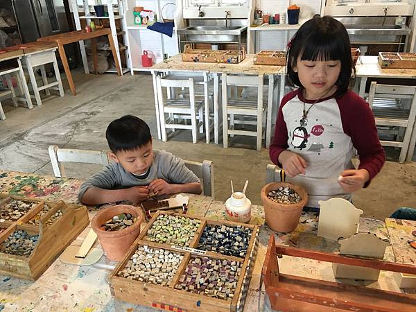 另外能讓小朋友專注認真很久的地方,就是園區入口的這間森林手做屋,