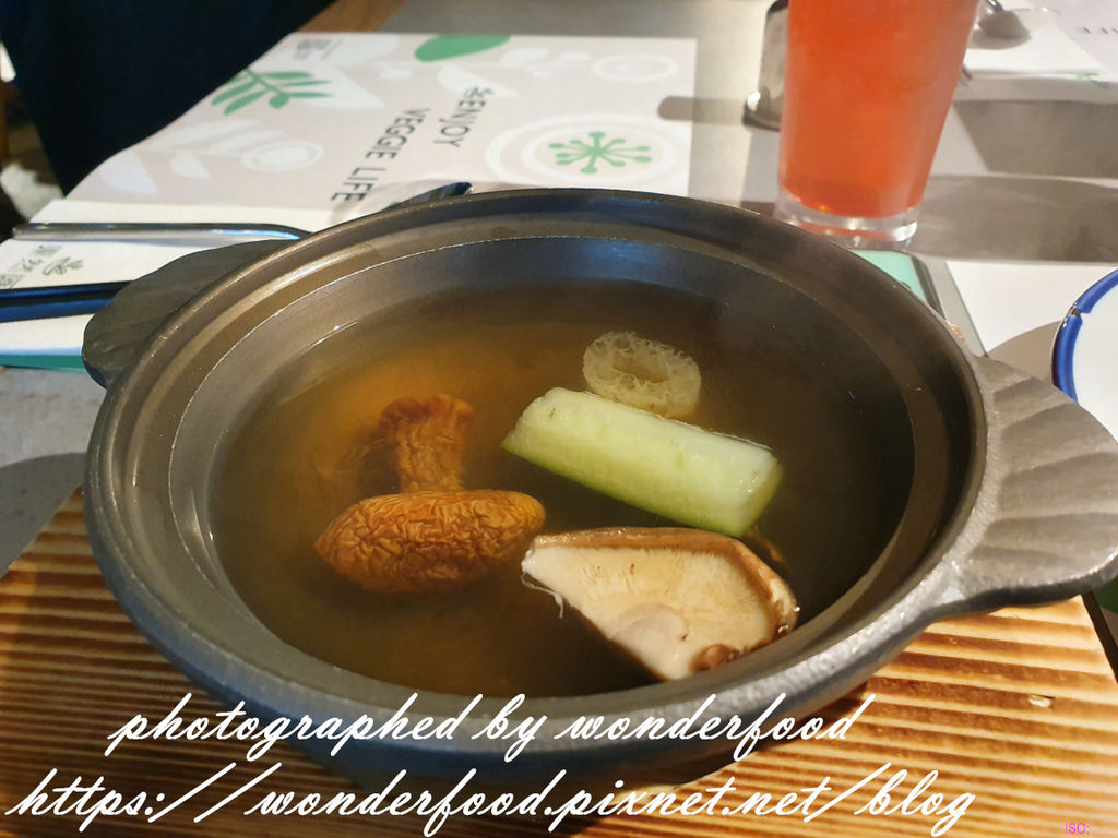 湯底有兩種,養生菇菇湯和黃金昆布蔬菜