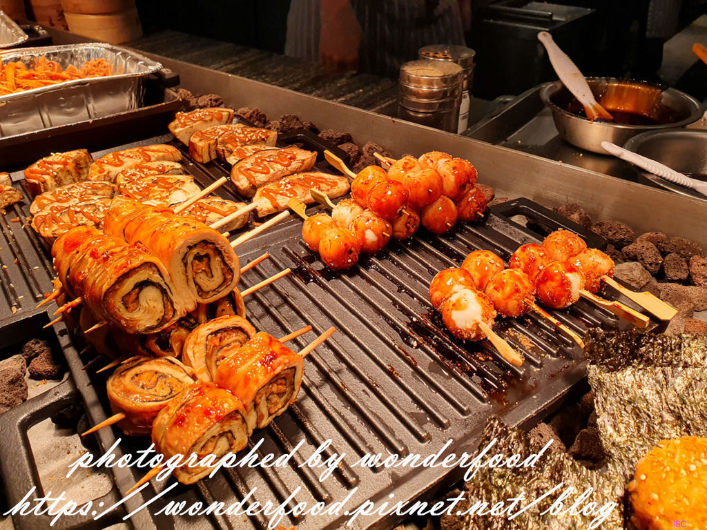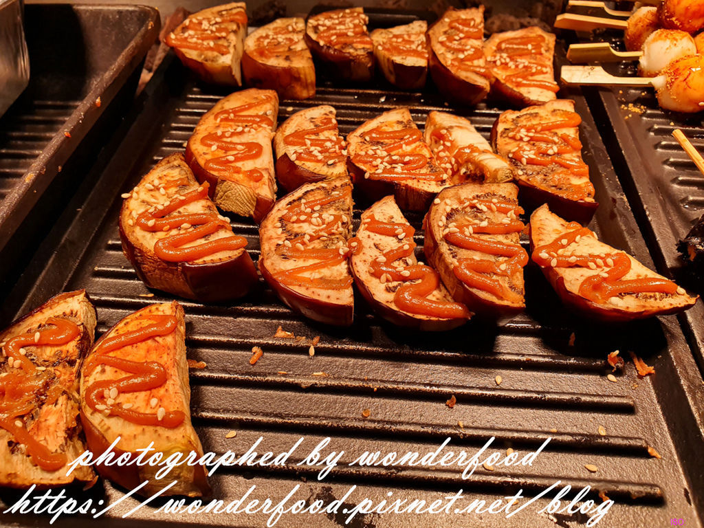 這區有日式烤物(烤麻糬、地瓜、菇類等)、日式天婦羅(地瓜、青椒等)