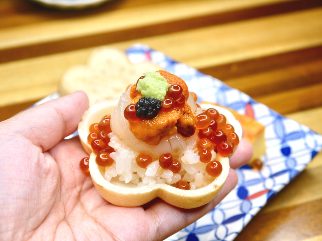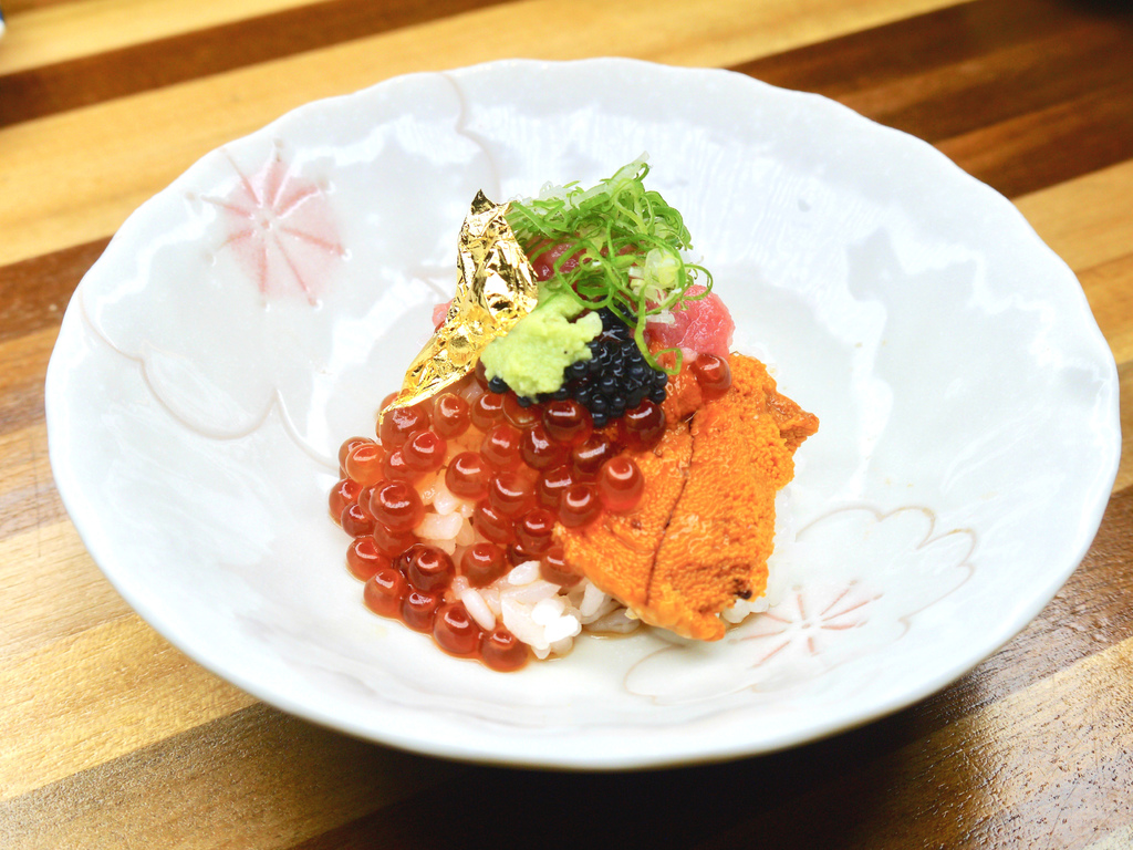 有來自黑鮪魚的鮮、海膽的甜、鮭魚卵和魚子醬的鹹香,