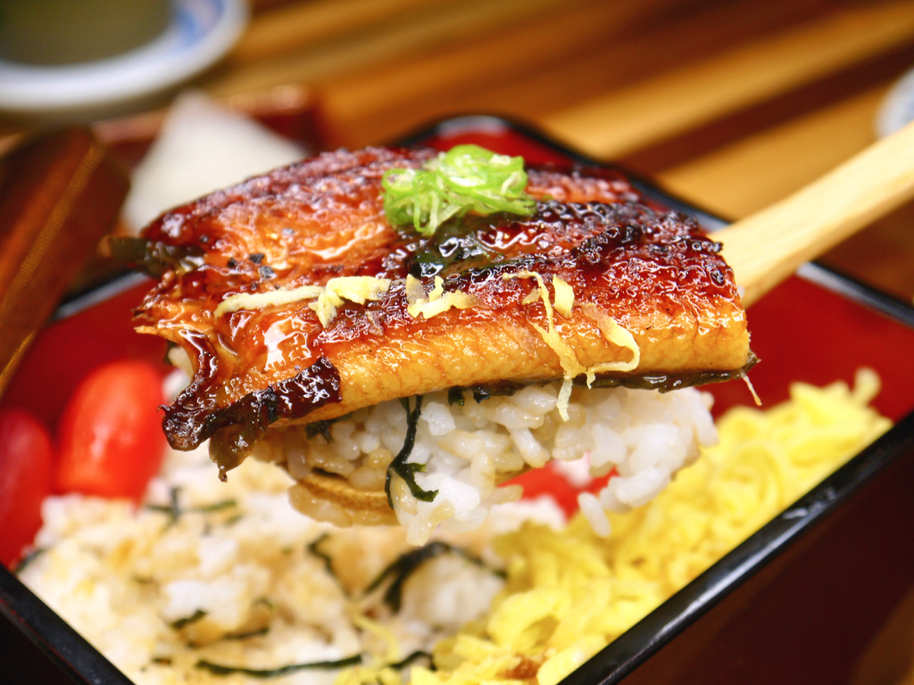 結合著鰻魚油脂的香氣、伴隨著微甜帶鹹鮮的烤醬,