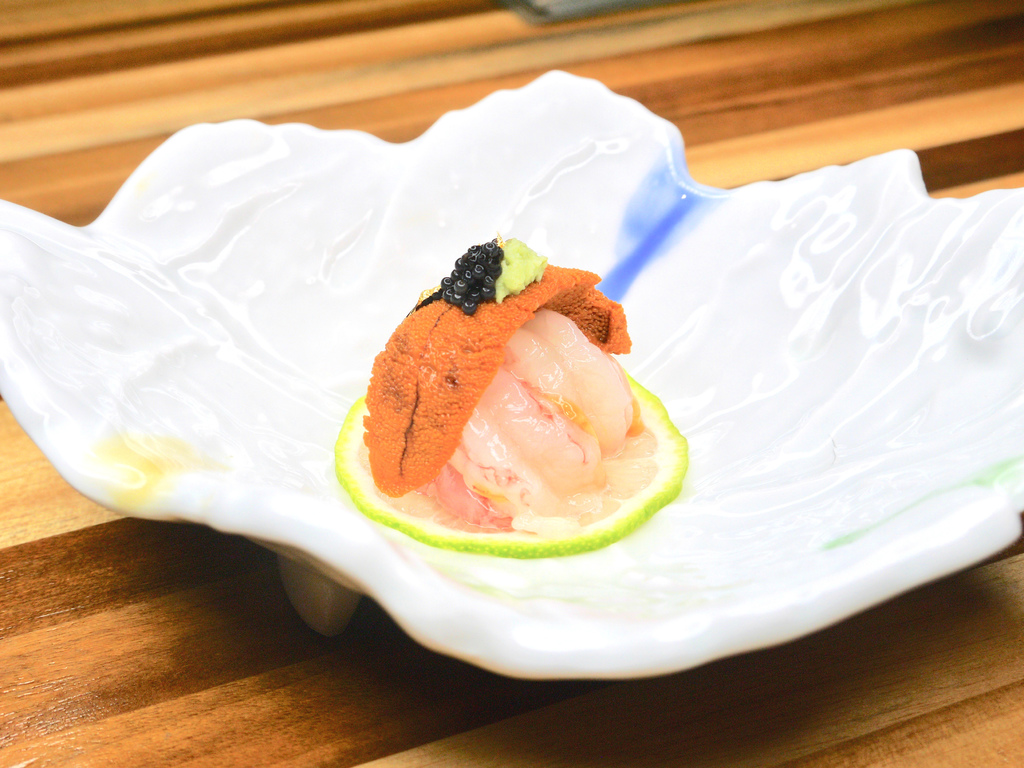 甜蝦佐海膽魚子醬