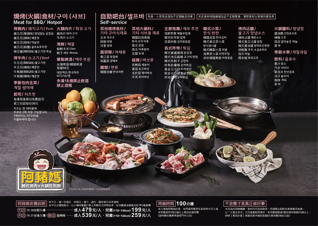 新店烤肉吃到飽推薦-阿豬媽韓式烤肉吃到飽新店捷運店菜單 (來源:阿豬媽韓式烤肉吃到飽新店捷運店,2022.09)