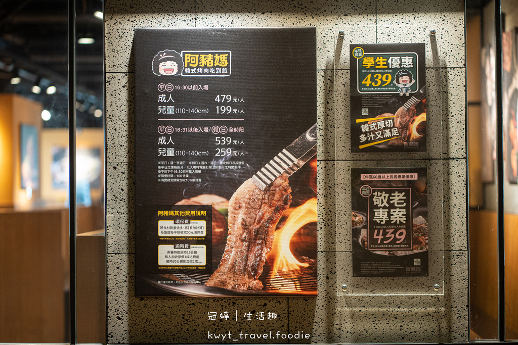 阿豬媽韓式烤肉吃到飽新店捷運店門口有附上消費方式,提供給路過的朋友們參考。