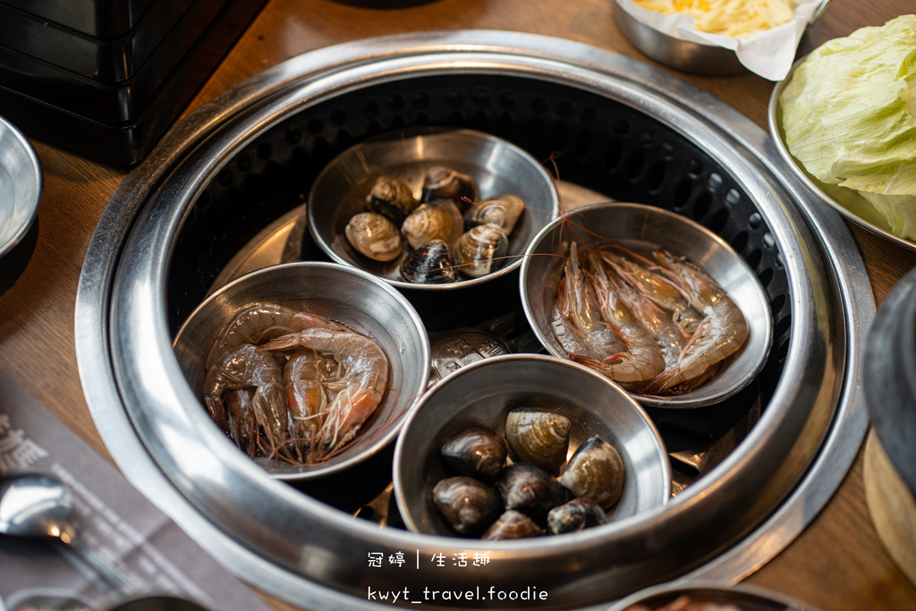 店內夥伴建議蝦子、蛤蜊可加水放入烤盤上,可較快烤熟開吃!
