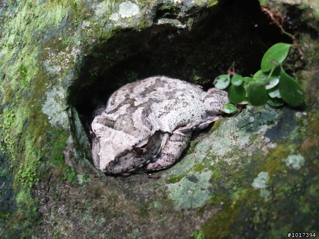 在石縫中午休的青蛙