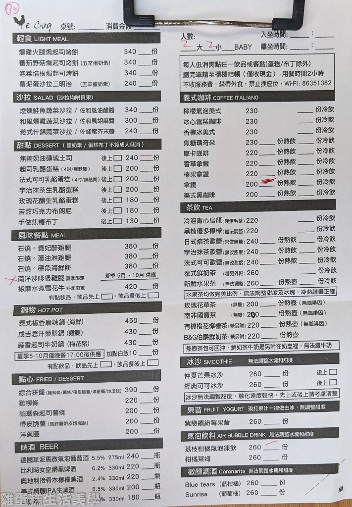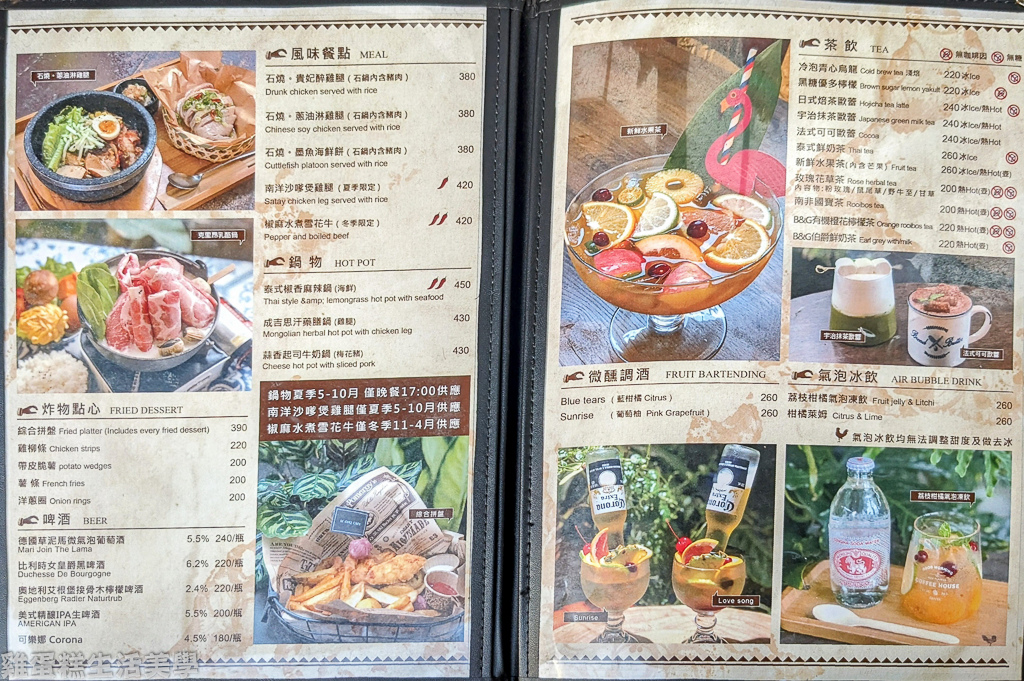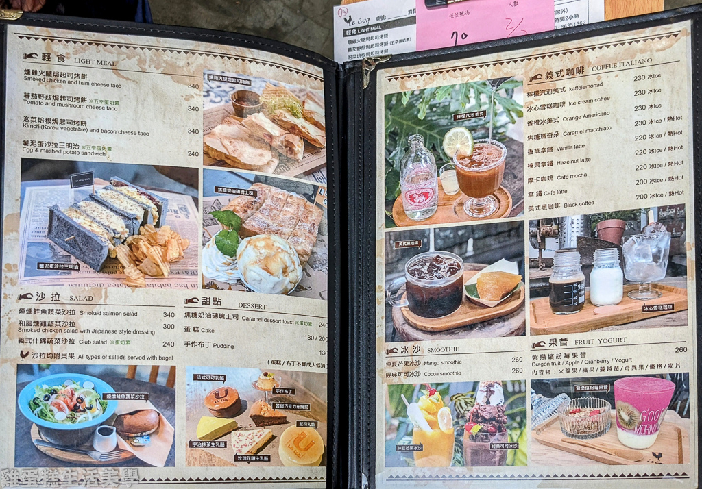 ▲公雞咖啡菜單:熱門商品使用照片排版,會辣的食物有標記辣椒符號。