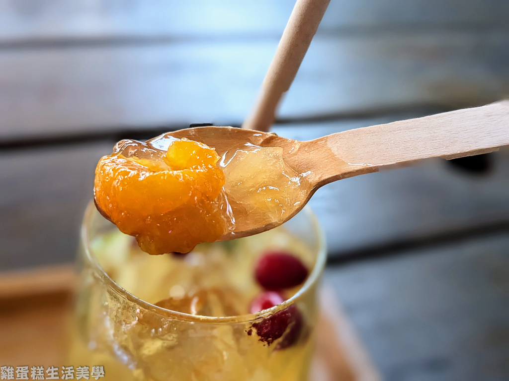 ▲荔枝柑橘凍飲內有滿滿的柑橘、荔枝等果肉,配色非常好看,喝到後面覺得太甜可加入氣泡水綜合一下。