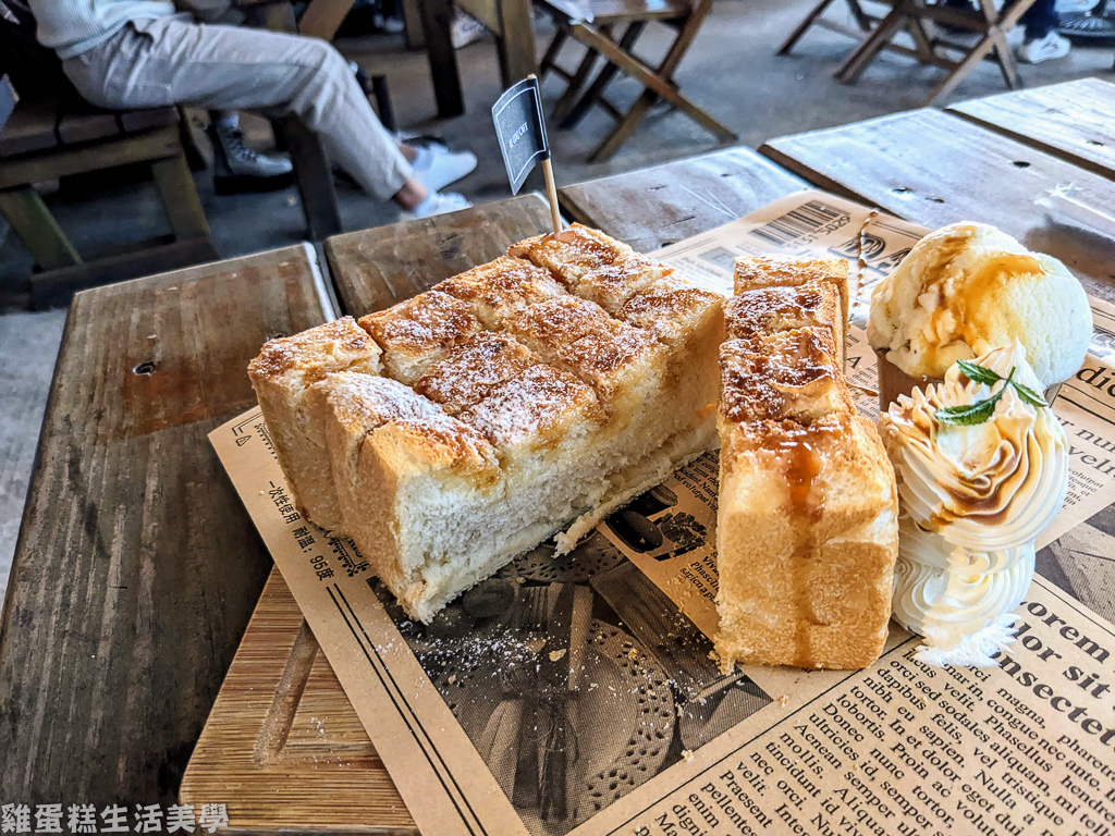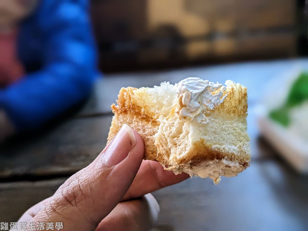 ▲厚片吐司相當厚實柔軟,表層的焦糖和糖粉很香,沾上香濃的奶油真的超好吃!