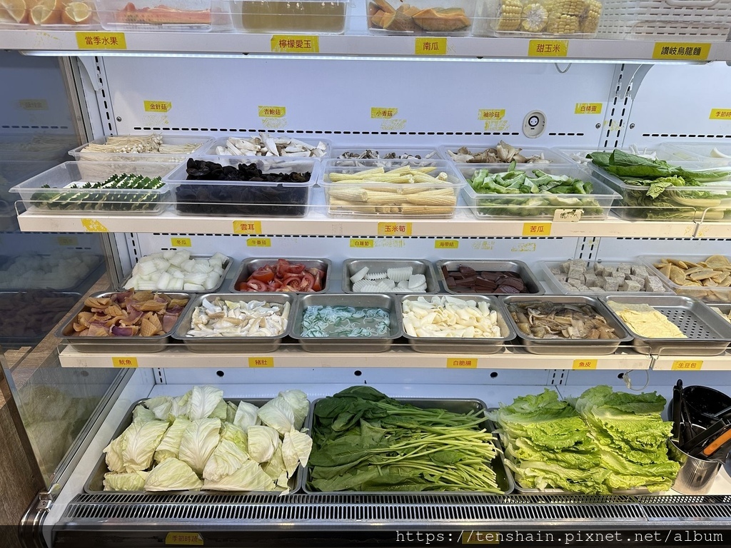 「饗樂 火烤兩吃 鍋物」雖然是平價火鍋,但食材一點都不馬虎,自助吧裡除了當季尚青的有機認證生鮮蔬果,還有知名品牌的火鍋料、新鮮水產膠原蛋白魚皮、零卡路里蒟蒻絲、自製甜點檸檬愛玉等。即使每種都只夾一個,仍然讓我們飽到差點吃不完,種類真的超級多。