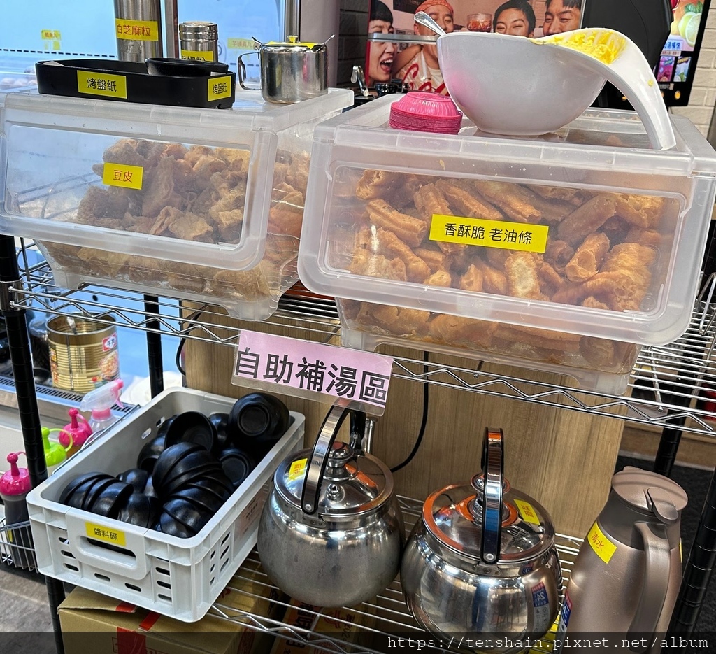 老油條上面有一大盤奶油,如果你是選擇火烤兩吃,記得挖一些放在烤盤上,立馬讓你的烤肉口感更升一級。豆皮上方有烤盤紙,還有烤肉用的花生粉、椒鹽粉、孜然粉、辣椒粉、白芝麻粒等。