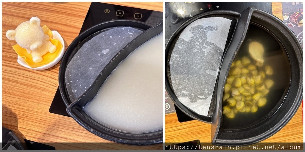 老婆喜歡"香濃牛奶湯頭",沒想到還附送一隻超級卡哇伊的狗狗牛奶湯塊,可愛的讓人不忍心放進鍋裡煮。掙扎了好久,才下定決心讓牠泡牛奶浴,看著牠漸漸熔化在湯裡,心中充滿不捨。不過說實在,加了牛奶湯塊,再加一片起司後,整個湯頭的味道變得更濃郁絲滑,拿來煮肉片最適合,可以讓肉片的味道上升好幾個台階。