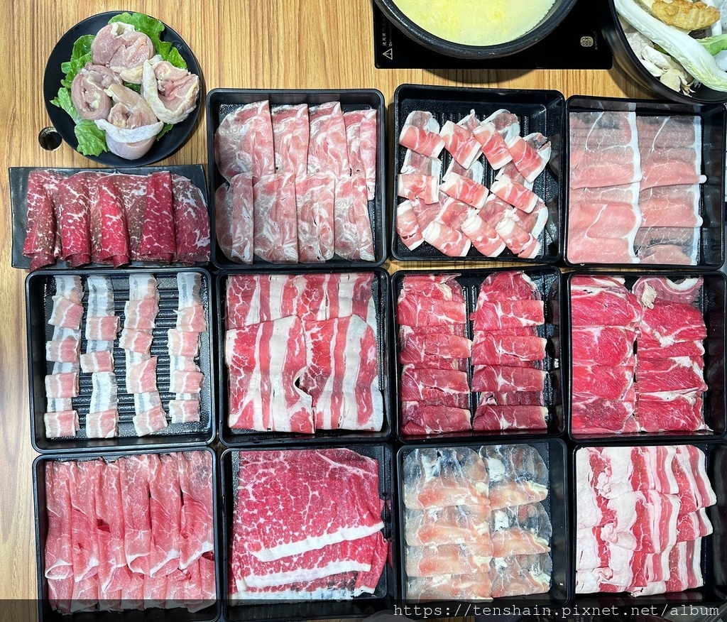 既然要吃鍋,當然要澎派一點,所以我們毫不猶豫的選擇 F 方案,直接攻頂。看看這 13 種肉品一字排開的氣勢,是不是令人食指大動呢?