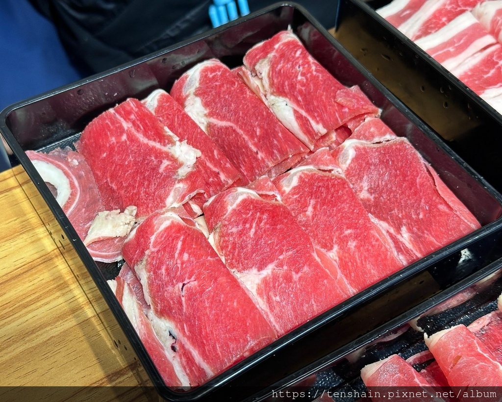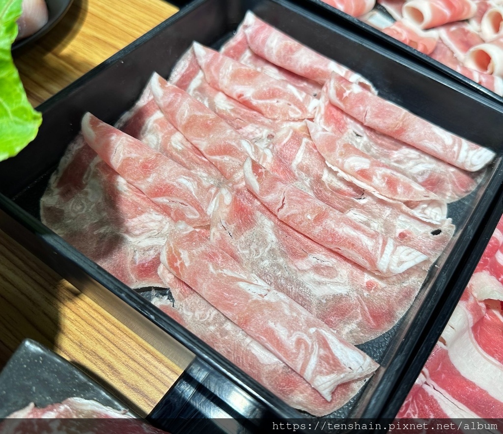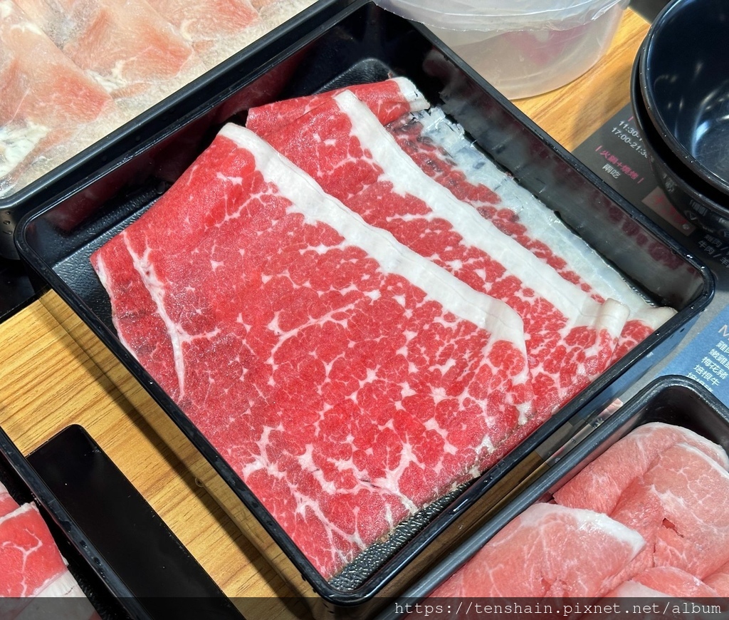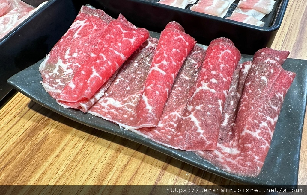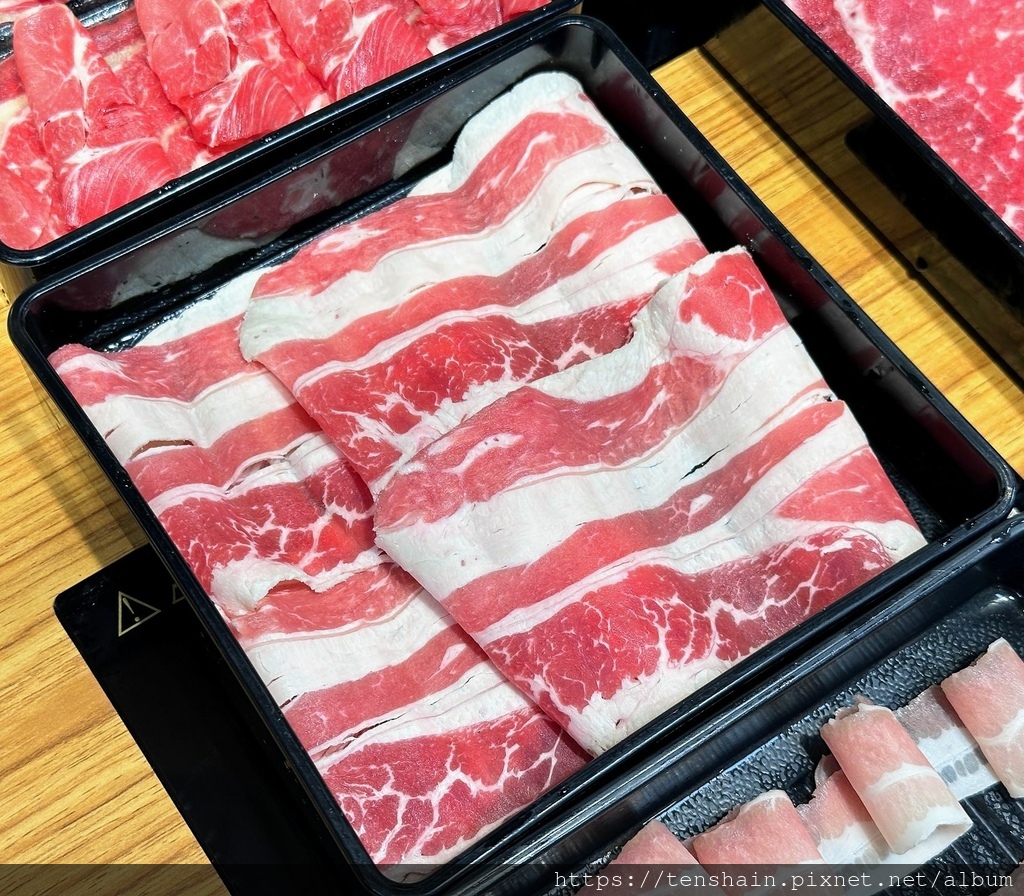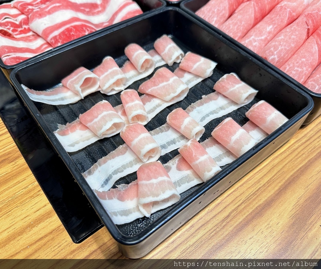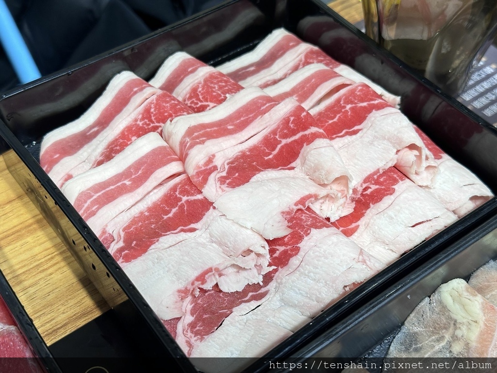 培根牛是最便宜的 A 方案就可以吃到的肉品之一, 但品質一點都不打折,涮到五分熟,肉質軟嫩的程度,讓我很驚訝。