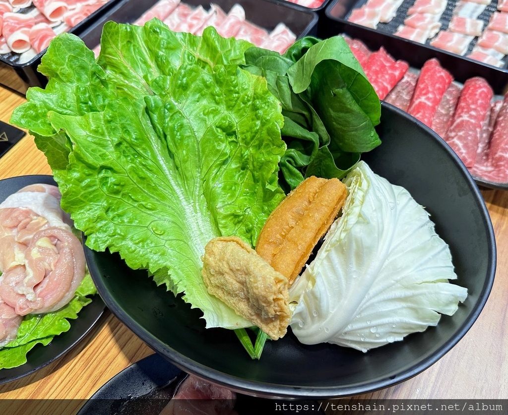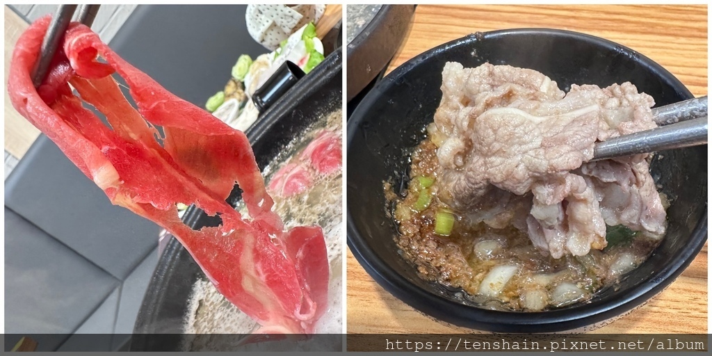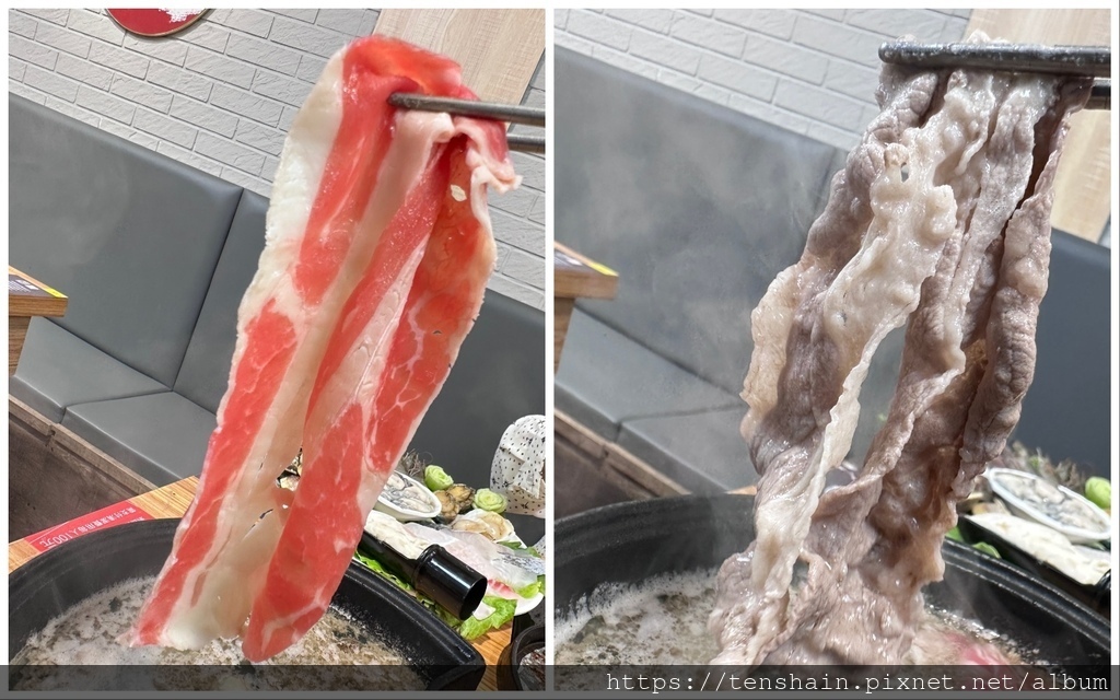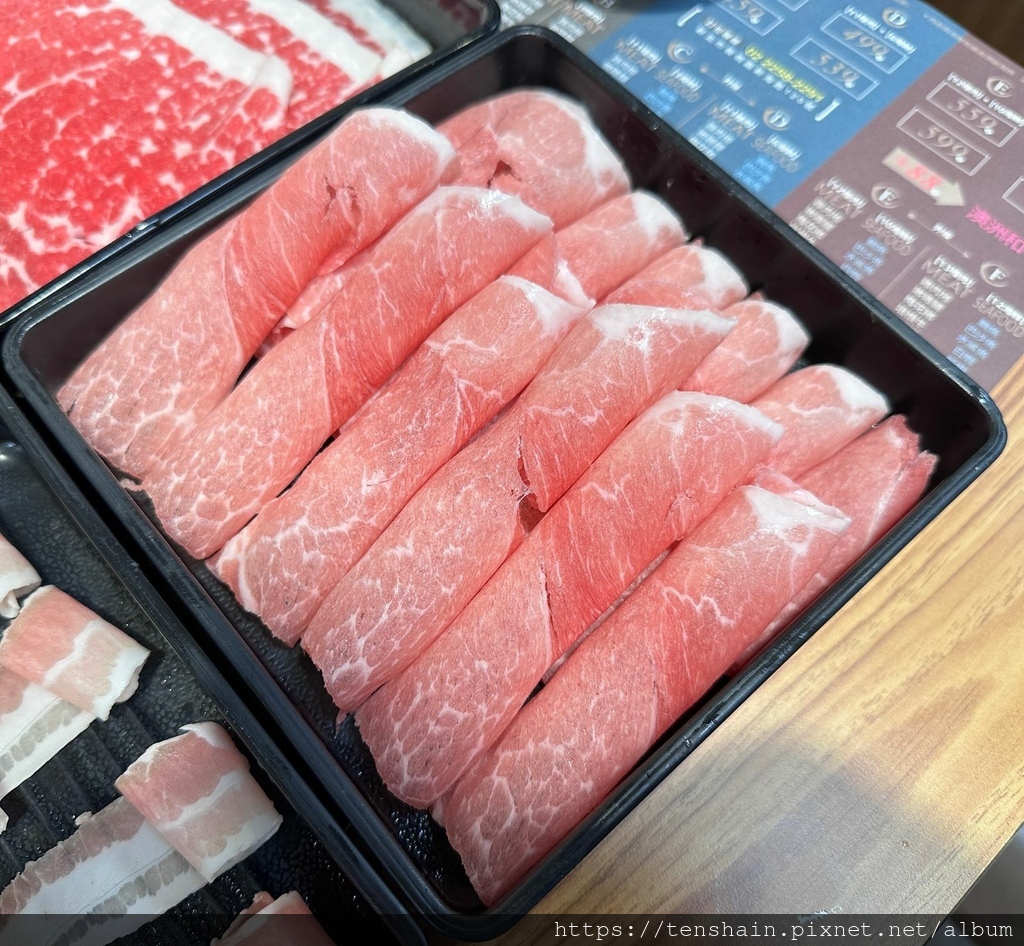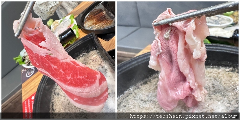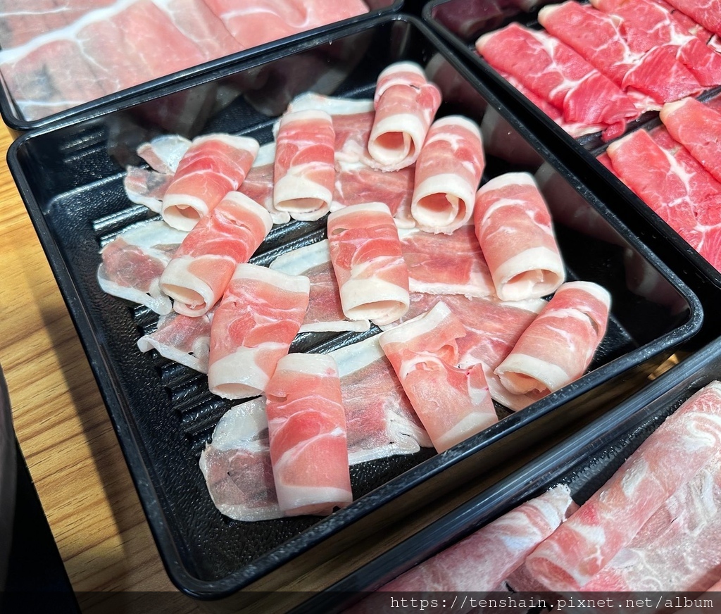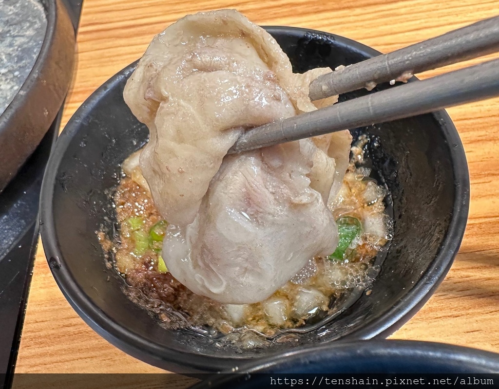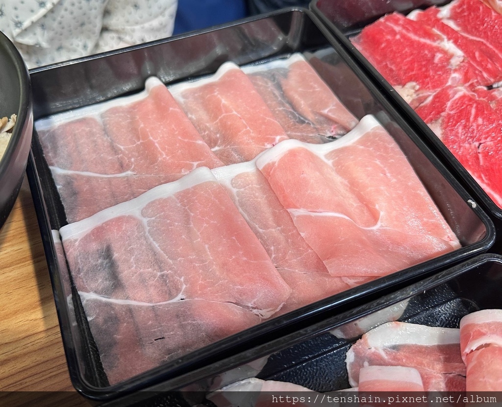 培根牛是最便宜的 A 方案就可以吃到的肉品之一, 但品質一點都不打折,涮到五分熟,肉質軟嫩的程度,讓我很驚訝。