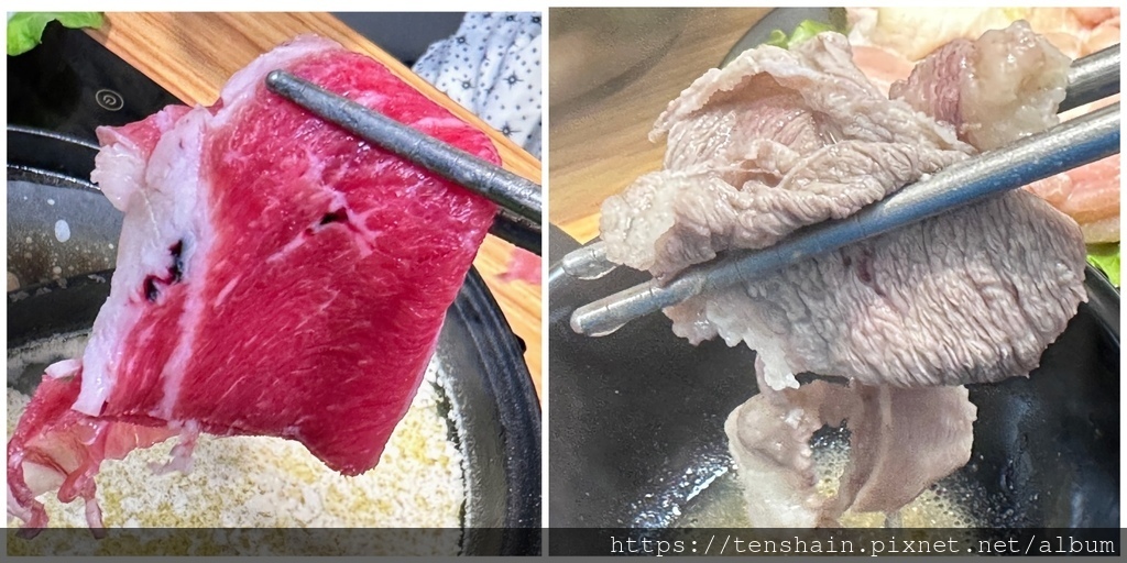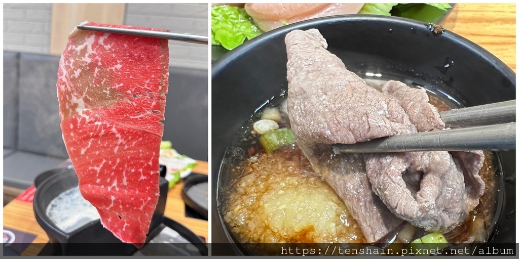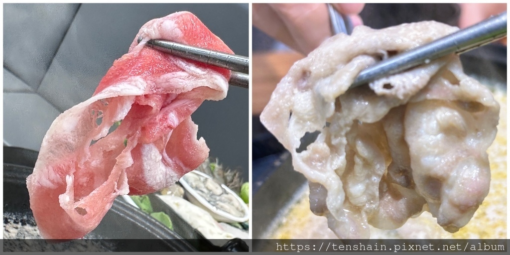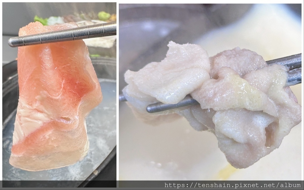 板腱牛肉質比較紮實有嚼勁,牛味十足,不過因為切得夠薄,所以不用擔心會咬不爛,適合喜歡牛味的朋友。