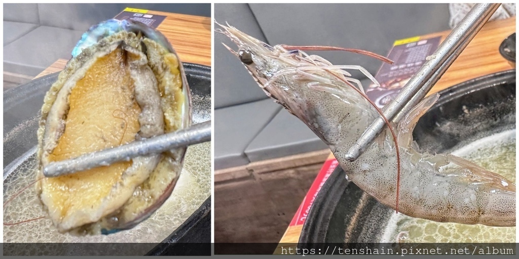 鮑魚肉質軟嫩有彈性,鮮甜海味很迷人;白蝦的口感有口皆碑,口感爽脆鮮甜,我超愛。