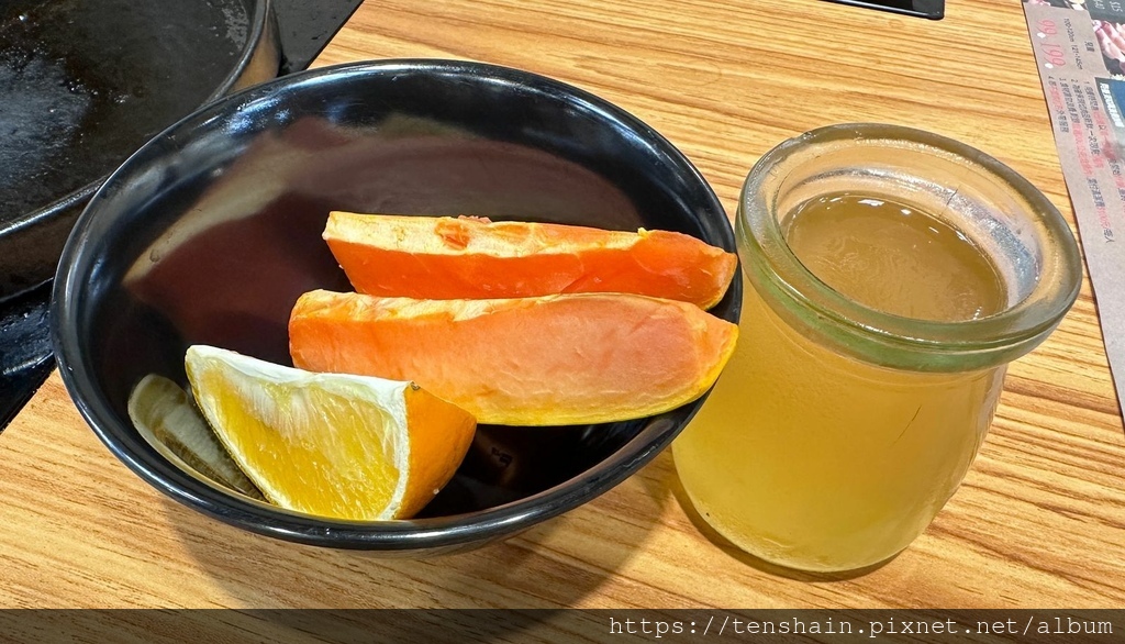然後再來一點水果和甜點,店家自製的檸檬愛玉,檸檬香氣濃郁,口感沽溜、甜度低,很對我的胃。