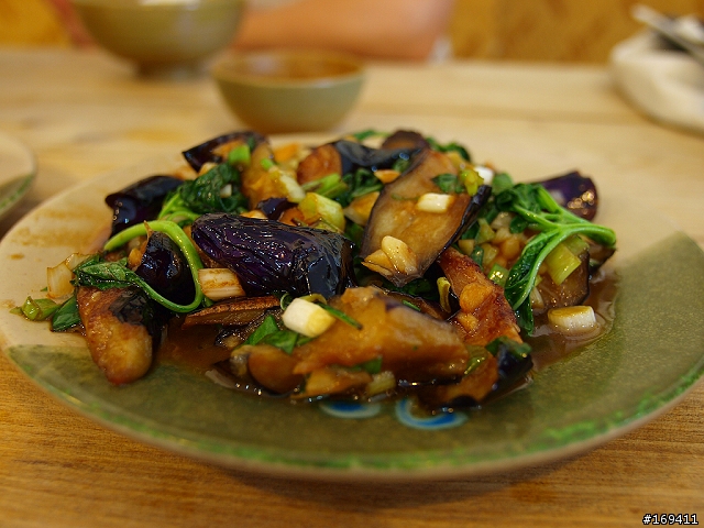 九層塔炒茄子,豬油炒的,拌上辣椒提味,夠勁兒!