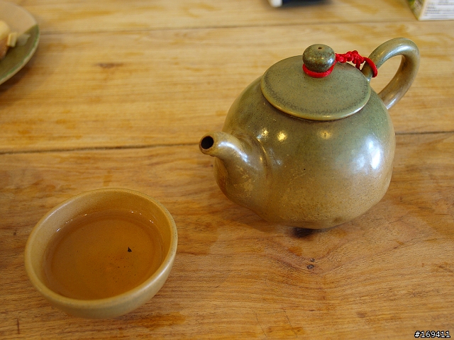 木頭懷舊桌椅,一進到餐廳裡,店裡伙計便送上茶水。