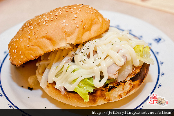 這是今天這一餐唯一看起來像是比較可口的~"精緻雞肉漢堡", (如上圖), 外頭的麵包烤的香香的, 裡頭的餡好像也算豐富, 只不過, 樂爸我沒吃, 因為全部都給阿成吃掉囉, 所以我只能從外觀來判斷, 是否真的好吃? 還有待商確囉!!