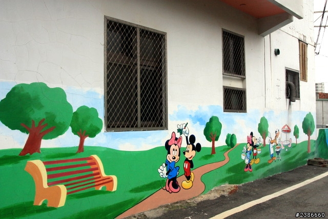 哇!小朋友們喜歡的卡通人物都在牆上耶!