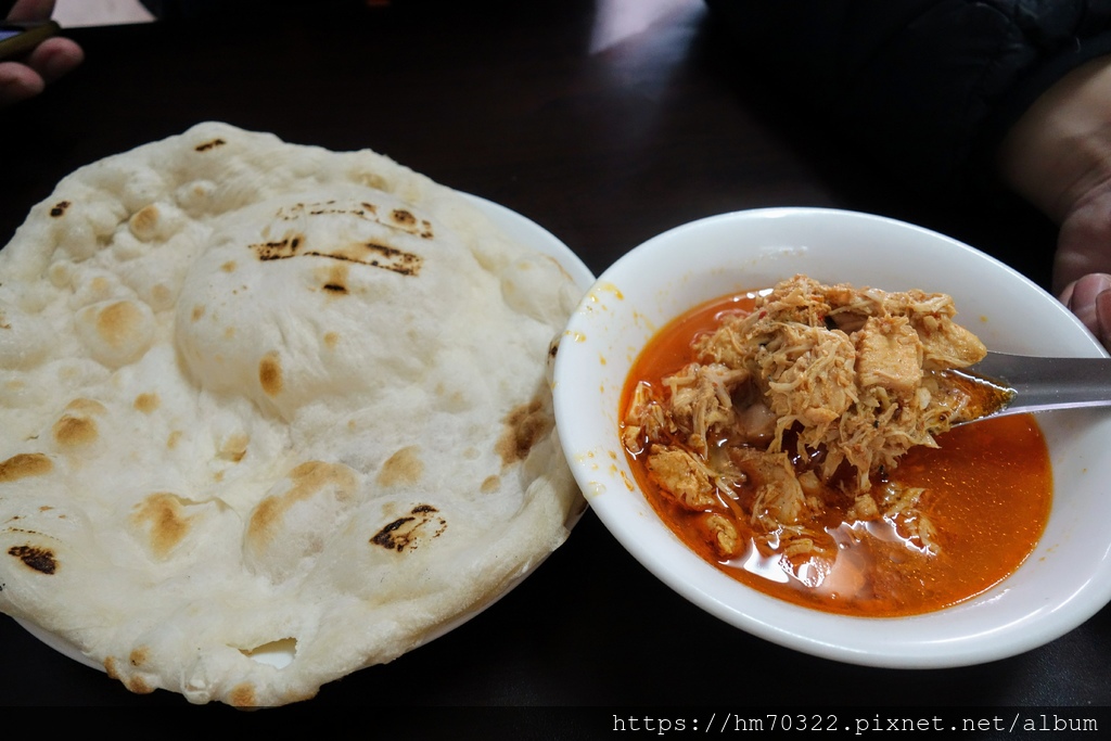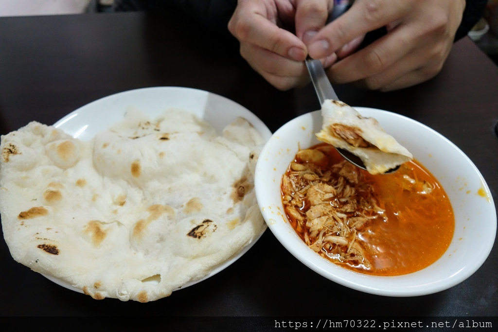 好啦!回到餐點部份…首先登場的是咖哩雞沾餅($105), 份量有一碗咖哩雞+一片烤餅
