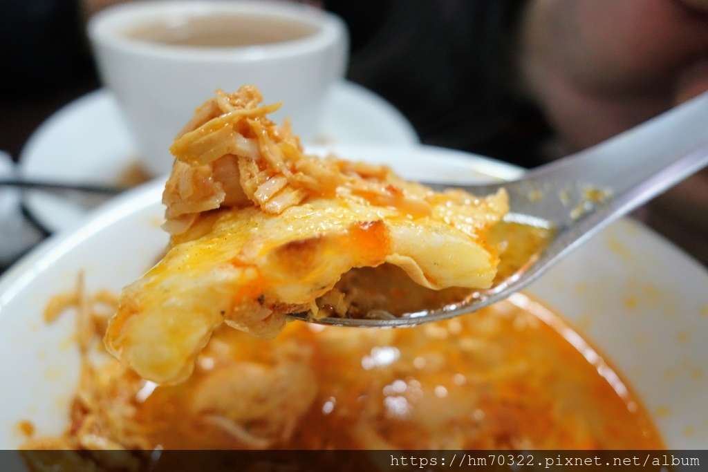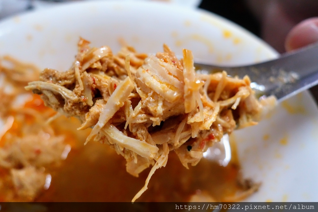 雞肉部份是雞胸肉塊&肉絲,混合兩種肉的原因不知是店家調配還是燉煮後的結果?肉質部份是雞胸肉獨特的微澀感