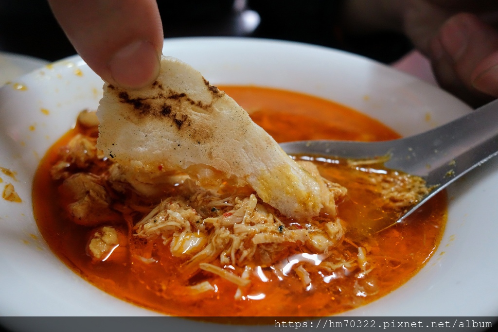 入口先有著滿滿的濃厚湯汁香味,接著是微微的麵香與焦香,軟軟的餅皮和雞肉綜合,雞肉微澀口感為主體搭配軟軟的餅皮為輔