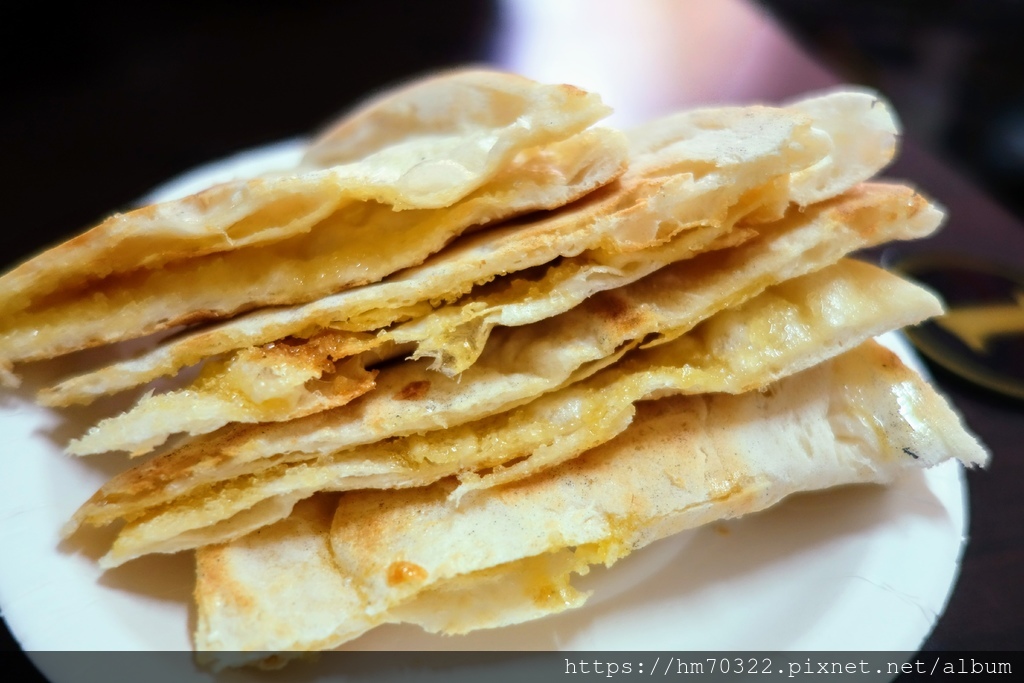 吃完沾餅喝完奶茶還意猶未盡,起身跟老闆再點了一份奶油烤餅($40)…外觀看起來滿像蔥油餅耶…哈哈哈