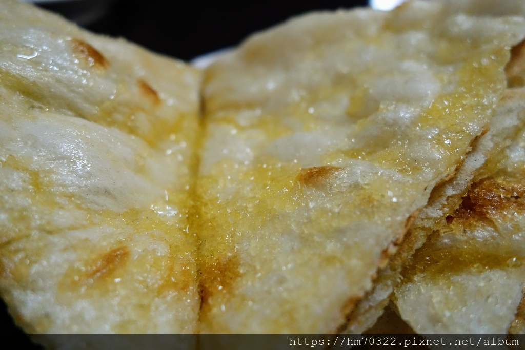 細部解析看看裡面有什麼?…嗯,看起來是烤餅上抹了奶油&撒上砂糖(其實剛剛看到老闆製作過程啦…哈哈哈)