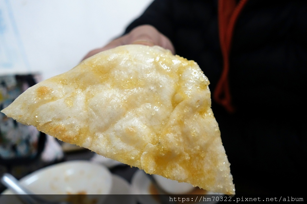 抹了奶油餅皮自動呈現半溼半乾狀態,口感上有外酥內軟的感覺,咀嚼時餅皮耐咬的特性顯現出來,在口中停留時間頗久的而且讓人捨不得吞下