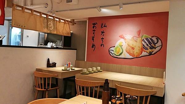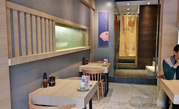 店面以淺色系木紋裝璜,加上極淺的灰色牆面和地板,所以看起來很明亮,一樓的桌位數不多。