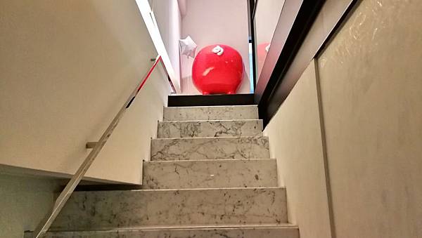 店員導引往二樓用餐區,在樓梯口,又看到這個紅色豬屁屁。
