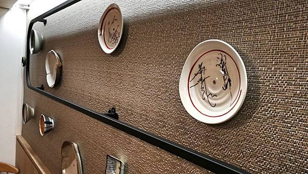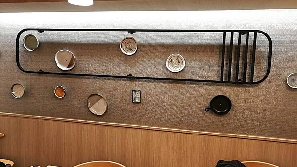 牆面上有個很特別的裝飾,把餐具都鎖上去?