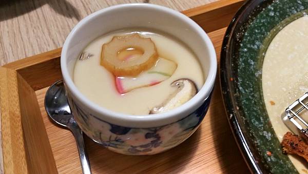 配菜茶碗蒸,當然不會太豪華,不會有大蛤仔、魚肉、雞肉的,就是很基本的蒸蛋。
