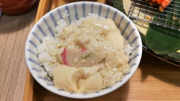 我喜歡把他倒入飯中,攪拌食用,讓飯變得更滑潤可口。透心又粒粒分明的米飯,彼此間有空隙不會太黏稠,讓茶碗蒸的柴魚和香菇香氣滲入飯中,