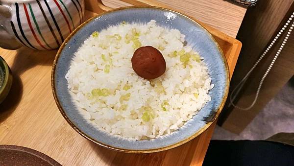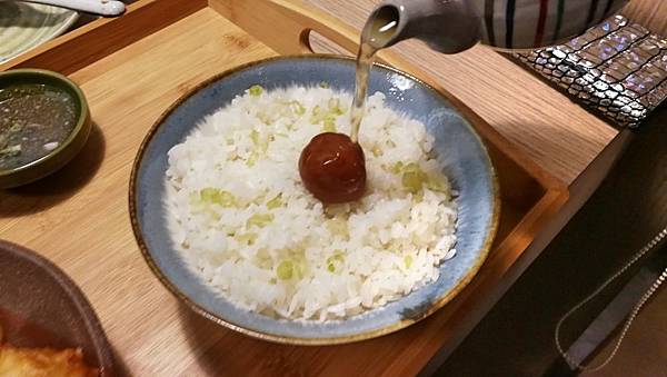 商業午餐附的飯,不太一樣,是茶泡飯,上面的醃梅子味道有點鹹,近乎蔭瓜。