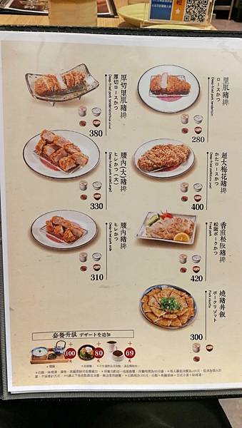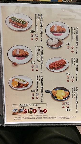 點餐時其實很難選擇,每種口味都很想試,像是蔥蒜、咖哩、橙汁每一個看起來都很特別,最後選了這個更少見的明太子豬排。另外可以加20元換腰內肉(我才鼻要軟軟的腰內肉)。