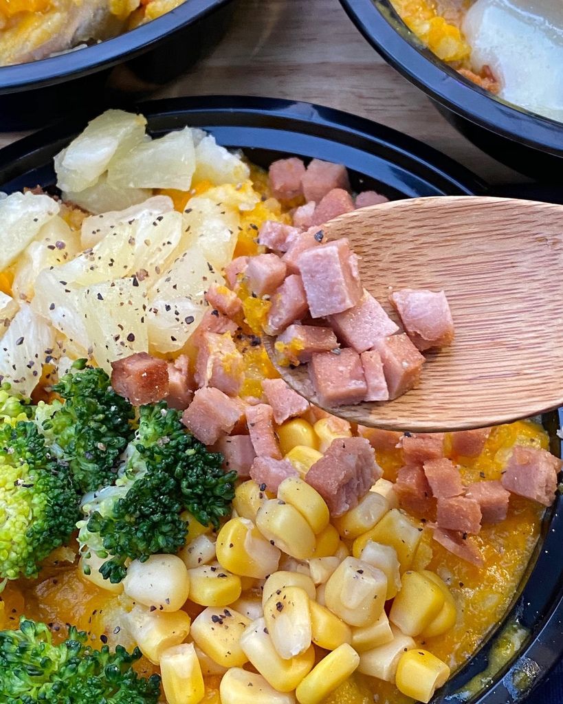 這款的話有添加鹹香的素火腿、香甜的玉米粒