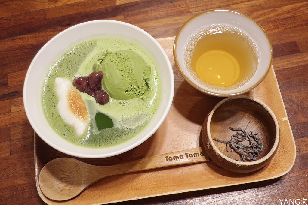 餅入抹茶冰淇淋紅豆湯也是很推薦,現刷抹茶裡有烤麻糬、紅豆及抹茶冰淇淋,另外提供一杯熱的煎茶和鹽昆布絲。粒粒分明、口感綿密的紅豆直接和抹茶搭配也是超好吃的,烤麻糬Q彈又帶有香氣,真的完美組合。吃完紅豆湯,熱熱的煎茶搭配鹽昆布絲又是另一種享受。