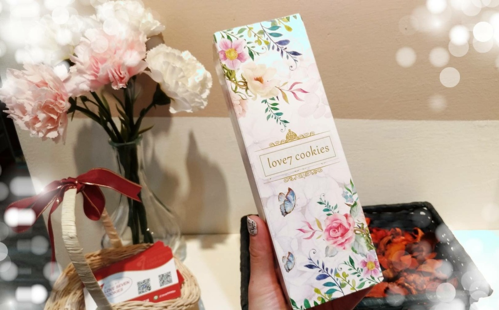 在愛7手工餅乾鋪就讓人感到無比夢幻的網美系風格 , 長型禮盒是較多人餽贈給情侶的最佳選擇!