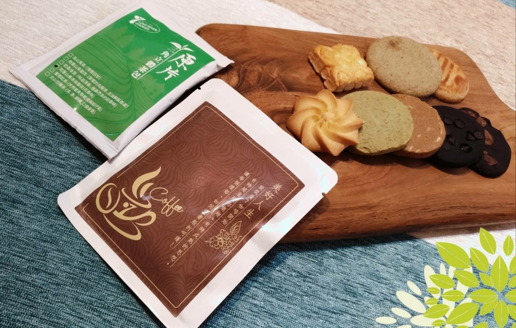 還有台灣綠茶也是熱賣款喔!圖片中綠色的餅乾就是台灣綠茶 , 精心選用台灣的茶葉製作香氣非常香 , 嘗來清爽又不甜膩!台灣綠茶餅乾隔壁就是咖啡餅乾 , 滋味無窮讓人吃起來非常滿意 , 也很適合當辦公室下午茶小點心!