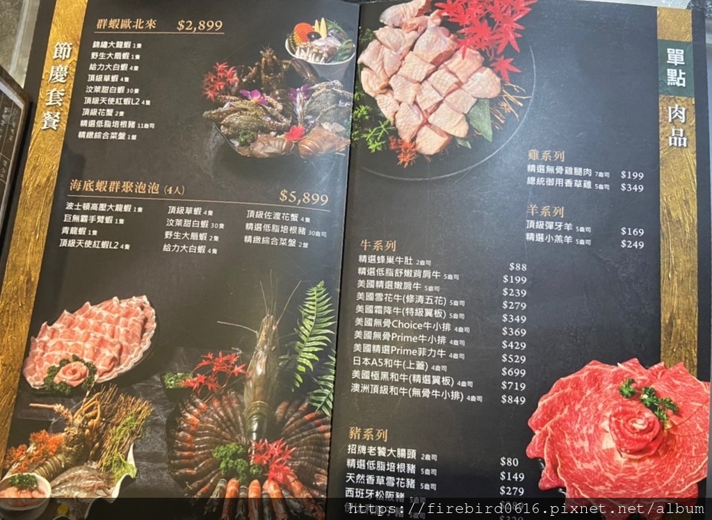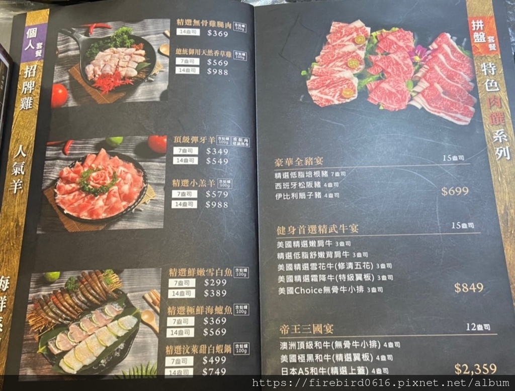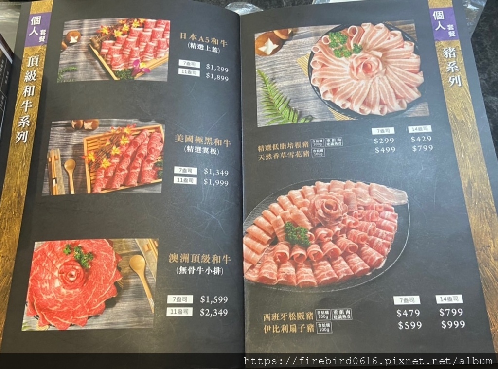 饌澤原的『精武牛宴』肉品都是選用美國牛,按照順序從左至右分別是:
