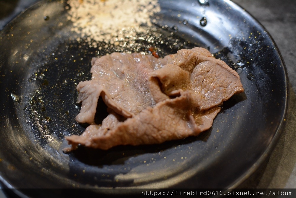 每種肉品會看喜好作點調整,像是油花多的雪花牛,會燙久一點讓高溫去除大部份油脂。油花分佈細緻的翼板或是牛小排,就會燙到微微捲曲,正面微變色,翻面再燙個3-5秒,帶點薔薇粉紅口感最軟嫩。