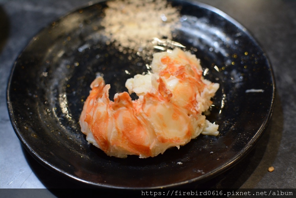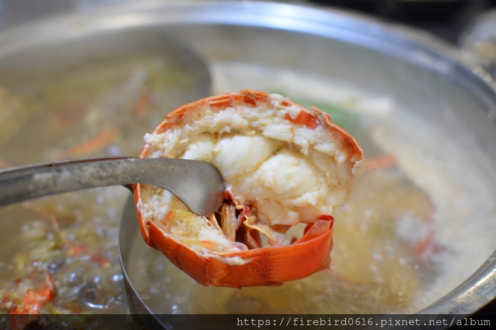 這龍蝦是一般火鍋店少見的錦繡龍蝦,觸鬚比身體還長,全身關節都很完整,個人猜想點餐前他應該還在水族箱中生龍活虎。